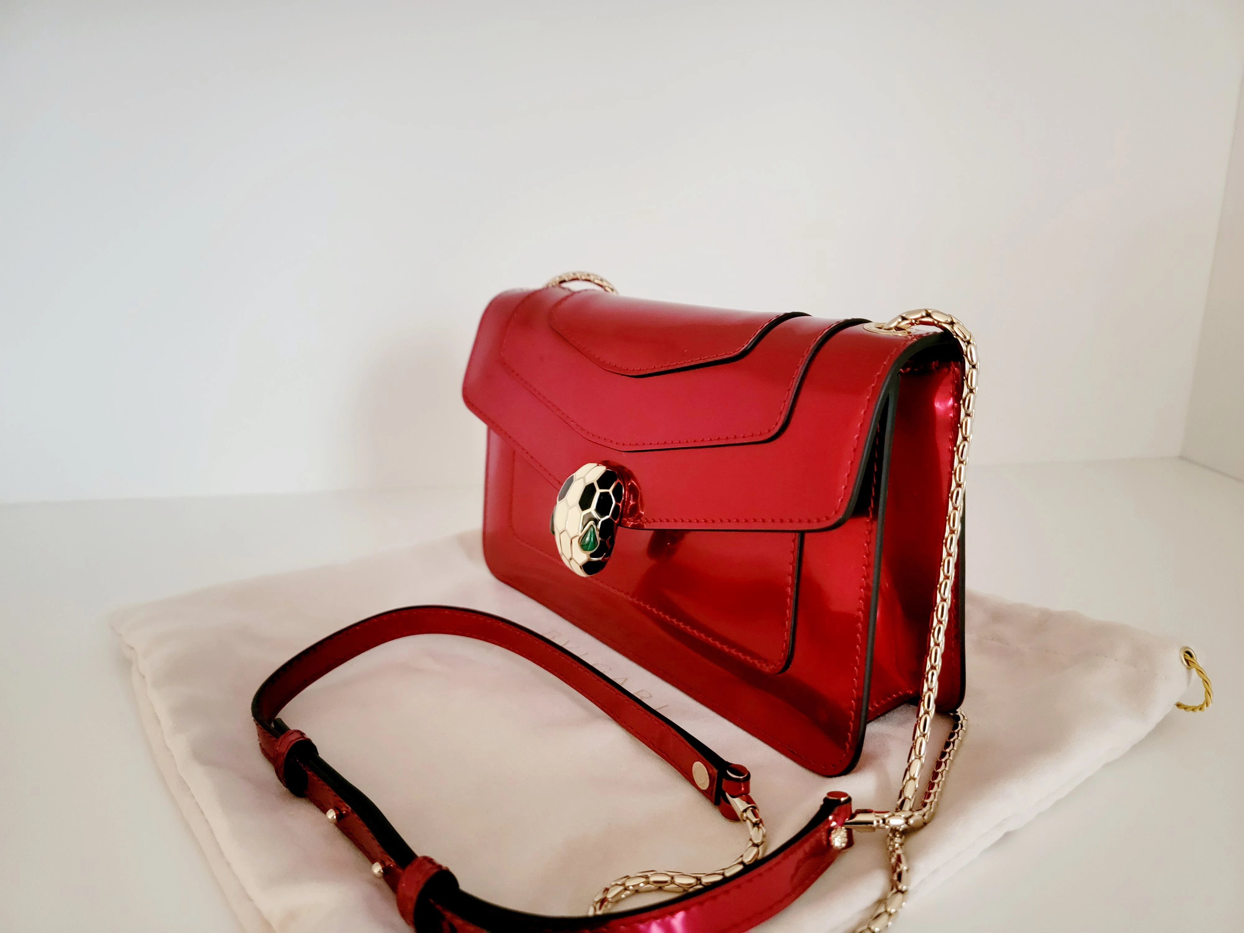 Traumhaft schöne Umhängetasche von Bulgari. Ein Schmuckstück, das jedem Outfit Glamour verleiht. Die Tasche ist neu und ungebraucht. Der Neupreis liegt bei ca. CHF 2800.-