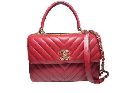 This Chanel bag, the Trendy CC model, is a modern and sophisticated luxury piece, coveted for its structured elegance and refined details. Crafted in sumptuous leather of a sublime red color, this bag stands out for its "V-stitch" chevron quilting that gives it a graphic and contemporary look.