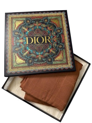 Discover the sublime elegance of this Dior scarf, presented in its beautiful illustrated gift box. The scarf, in a rich beige/brown tone, offers a soft touch and fluid drape. The subtlety of its tone-on-tone pattern adds a touch of discreet refinement, typical of the House of Dior.