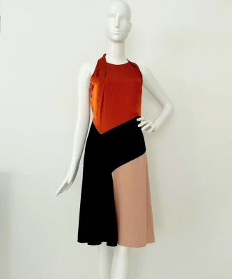 Sehr schönes, figur-schmeichelndes Kleid von Alberta Ferreti. Der obere Teil des Kleids ist aus Satin (glänzend), der untere aus Crêpe-Gewebe (matt). Das Kleid eignet sich sowohl fürs Office, als auch als Cocktail Kleid. Es wurde zwei Mal getragen. Masse Puppe: 88-64-94 (Grösse 36/S), 182 cm gross.