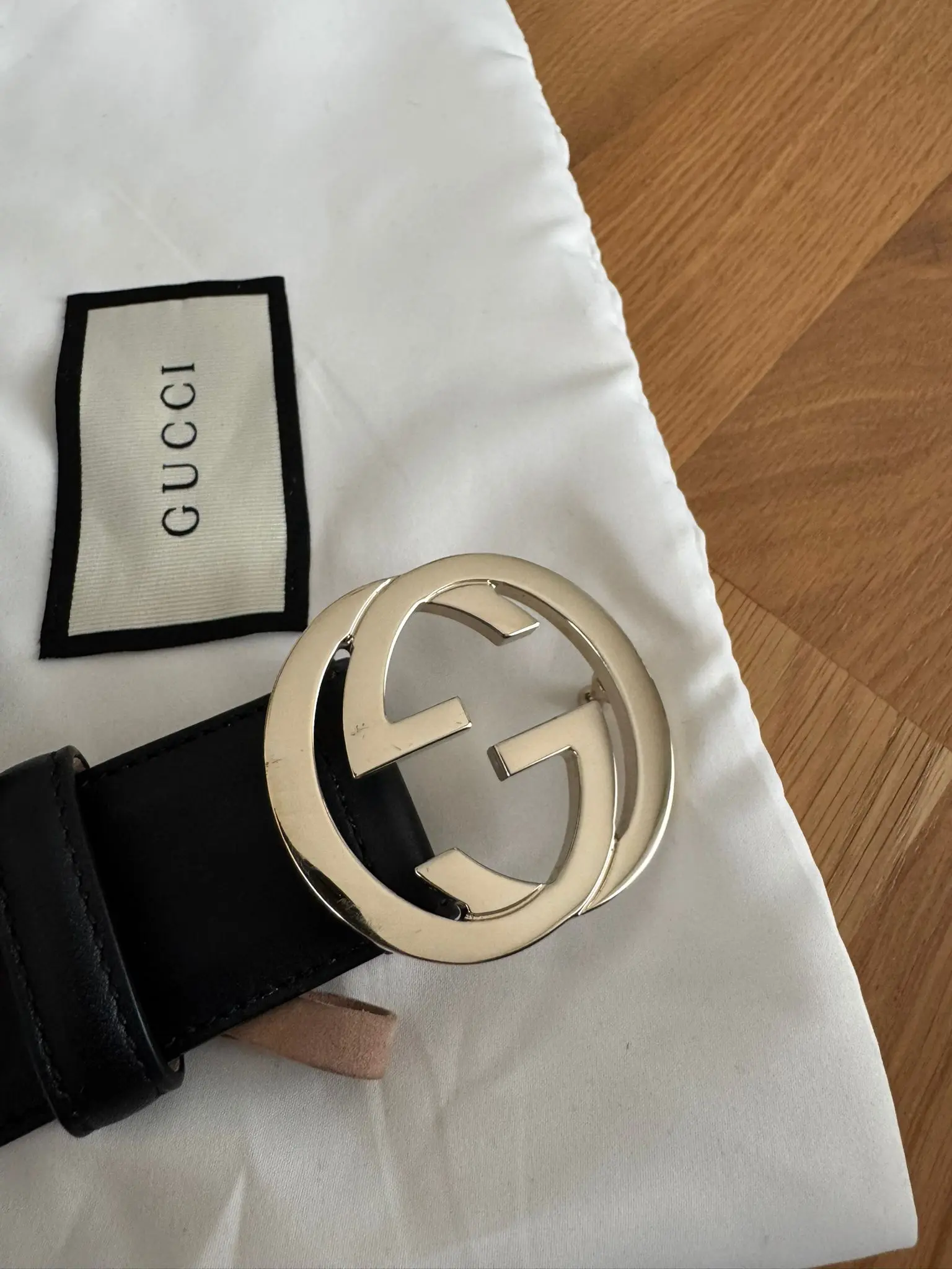 Dieser originale Gucci Gürtel aus schwarzem Glattleder überzeugt mit der ikonischen silberfarbenen Doppel-G-Schnalle und zeitlosem Design. Gefertigt in Italien, steht er für hochwertige Verarbeitung und klassischen Luxus. Der Gürtel hat die Größe 80 / 32. Er befindet sich in einem guten gebrauchten Zustand und weist lediglich einige kleine Flecken in der Innenseite auf, die auf den Fotos ersichtlich sind. Geliefert wird er inklusive original Gucci Dust Bag.