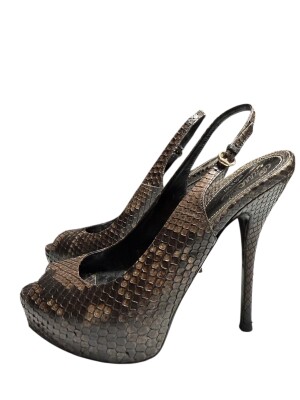 Discover boldness and timeless elegance with these sublime Gucci pumps. Designed to captivate the eye, these shoes feature exceptional python-effect leather, enhanced with a metallic finish that captures the light with every movement.