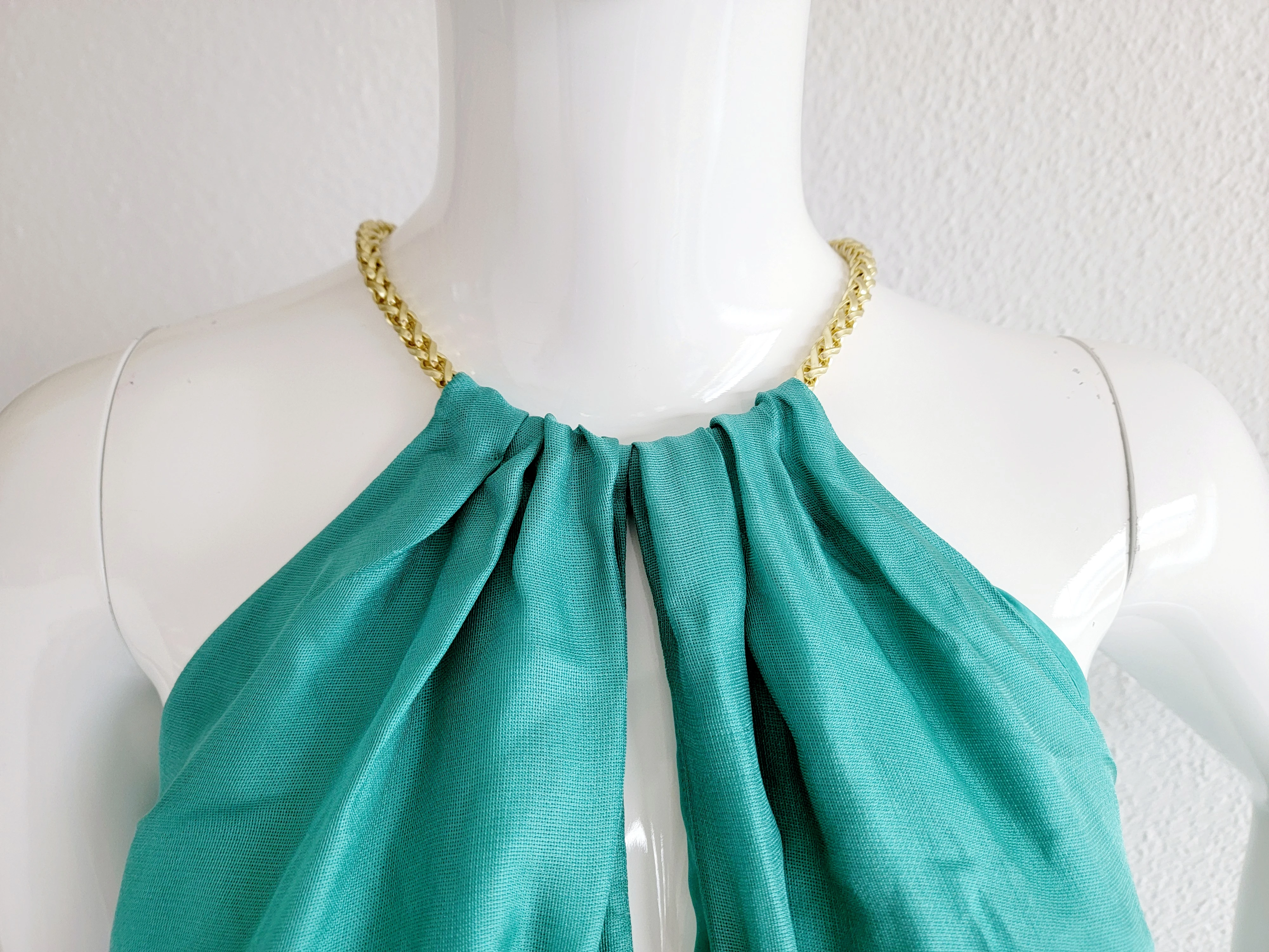 Wunderbares, edles, türkisfarbenes Seidenkleid von Hugo Boss. Neu, mit Etikette. Luftiges Gewebe, gefüttert, blickdicht. Neupreis ca. 700.- Masse Puppe: 88-64-94 (Grösse 36/S), 182 cm gross. Neupreis ca. 800.-