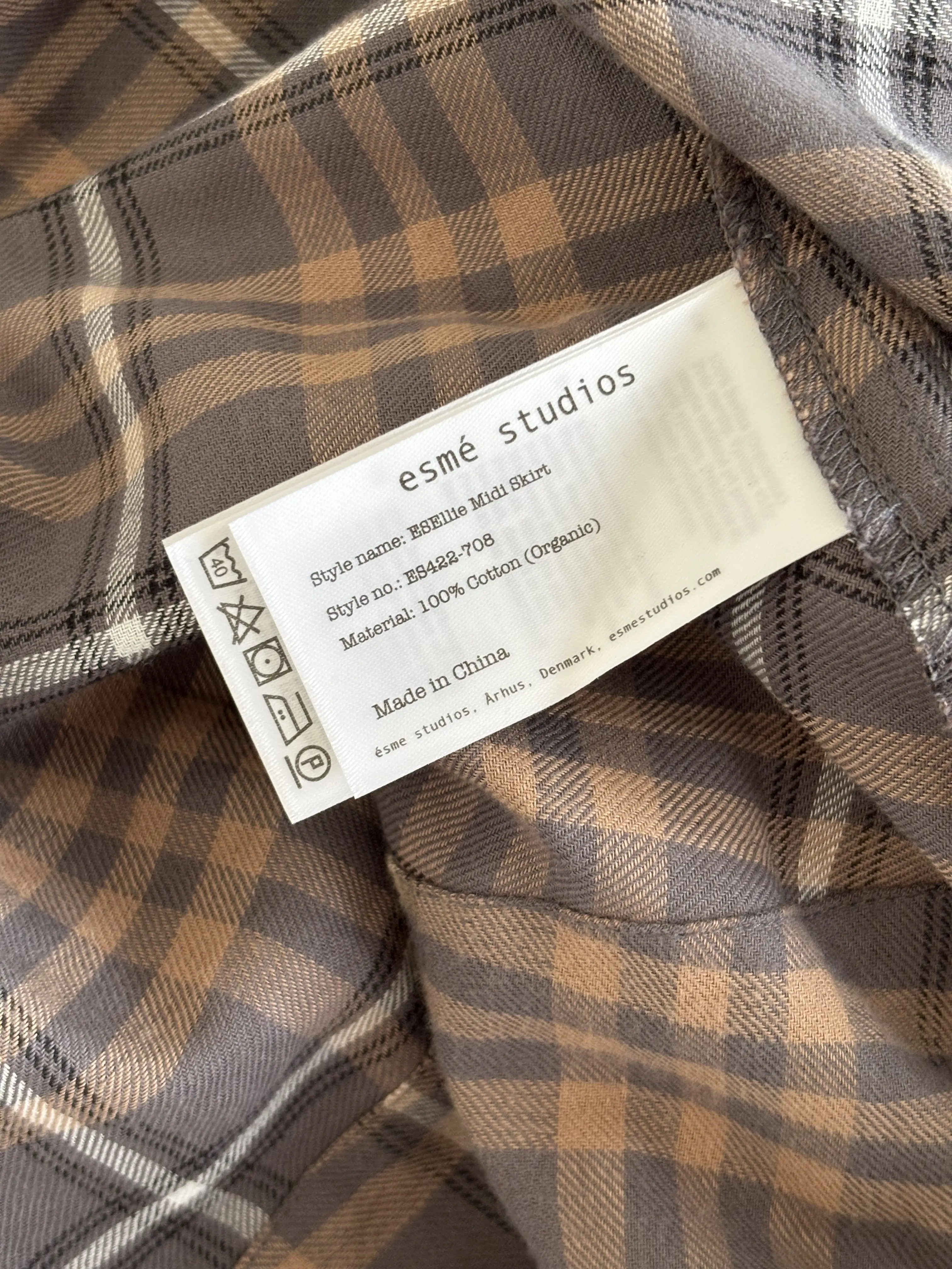 Midirock, grau, beige kariert. Weiches Gewebe. Elastischer Bund, kein Futter