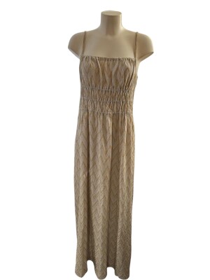 Long knitted Missoni dress in gold and golden tones with thin straps.