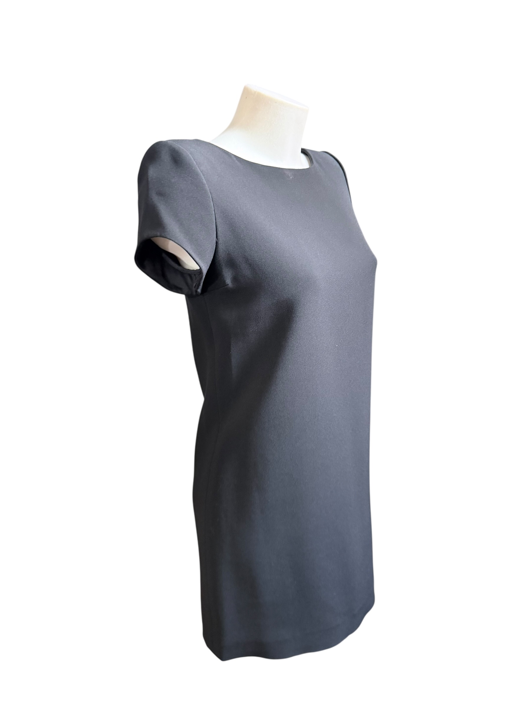 This Saint Laurent dress embodies sharp minimalism and architectural elegance of the House. Crafted in black, it offers a fluid yet perfectly held drape, emphasizing a modern and confident silhouette. The design focuses on a clean straight cut, enhanced by a boat neckline that delicately reveals the neck. This classic black dress is ideal for a high-flying professional outfit or an elegant cocktail event.