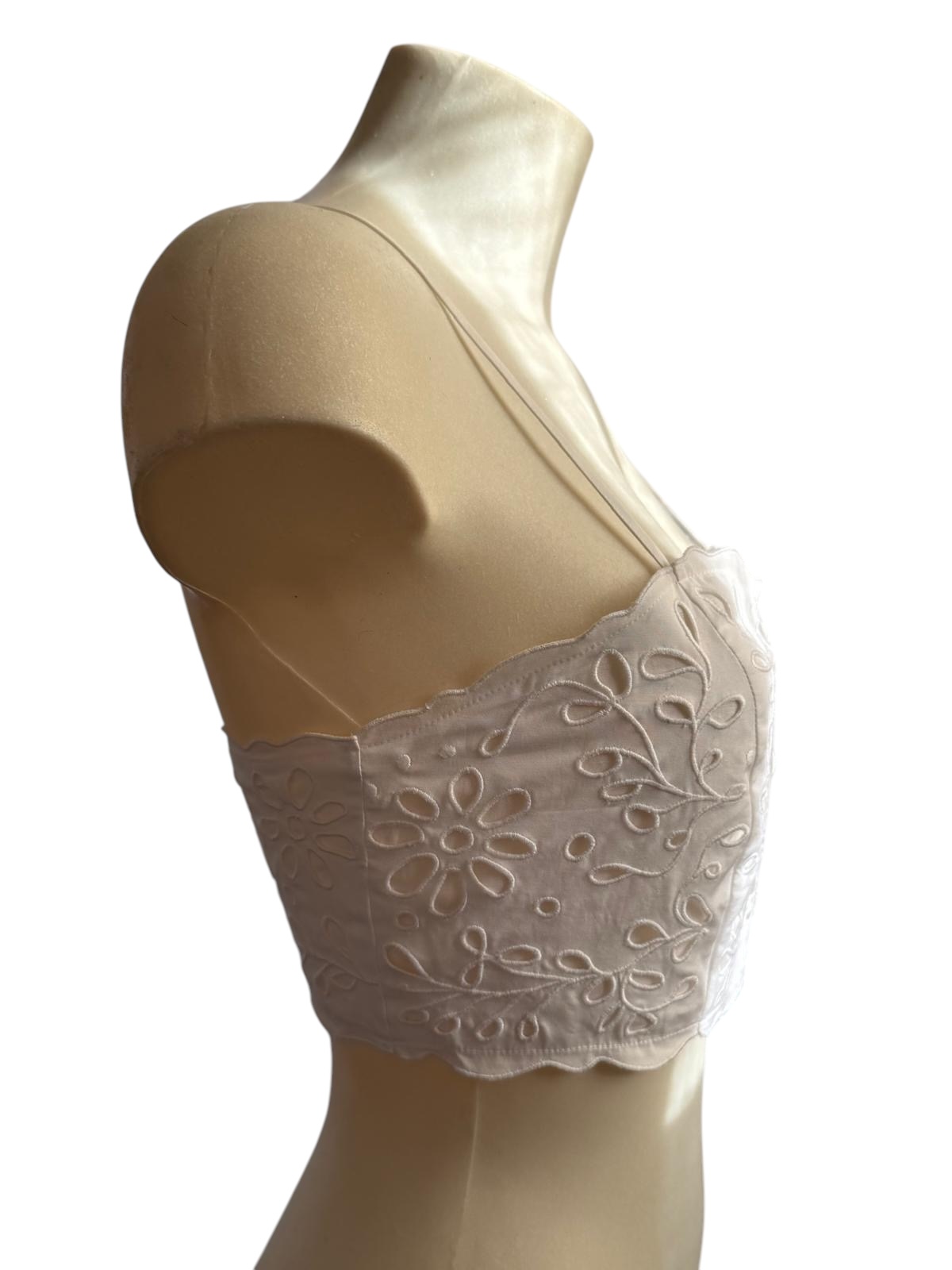 This pre-owned Chloe top is a true ode to craftsmanship and bohemian-chic style. It stands out with its beautiful openwork English embroidery, creating a subtle play of transparency and texture. Its scalloped neckline and thin straps add a touch of grace and delicacy.