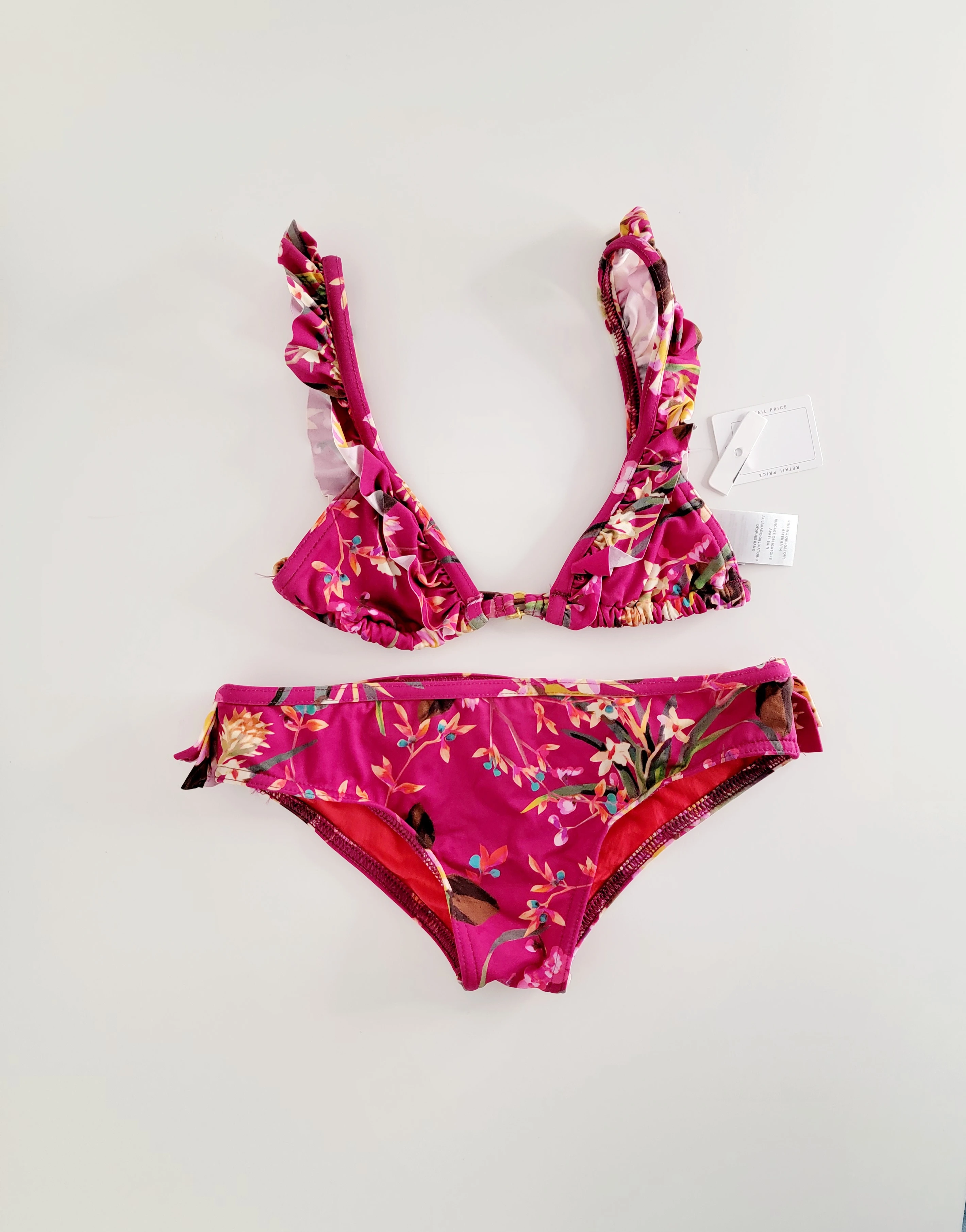 Neuer Mädchen Bikini von Banana Moon in qualitativ hochwertiger Stoff und Verarbeitung. Als Grösse ist 8 Jahre angegeben, aber der Bikini ist sehr klein geschnitten und passt optimal für ca. 6- jährige Mädchen. Ungetragen, mit Etikette