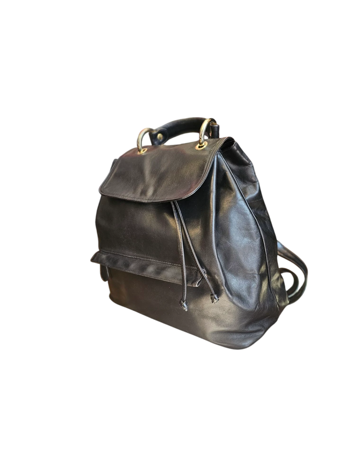 This stylish black leather Bally backpack is perfect for everyday use. It is pre-loved and has been well-maintained. The backpack features gold hardware, a spacious main compartment and one small pocket outside, and adjustable straps. It's an ideal bag for carrying your essentials in style and comfort.