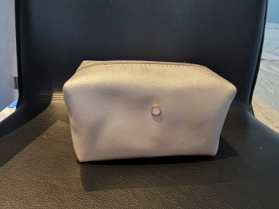 Business Class Gift von der Emirates in sanftem und schimmerndem lila Ton. Nie gebraucht. Inkl. Parfum und Body Lotion Müsterchen, die nicht angebraucht sind. Bei einem Body Lotion Muster ist der Deckel halbwegs abgebrochen. 17 cm lang, 9cm hoch, 10 cm tief