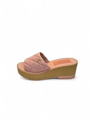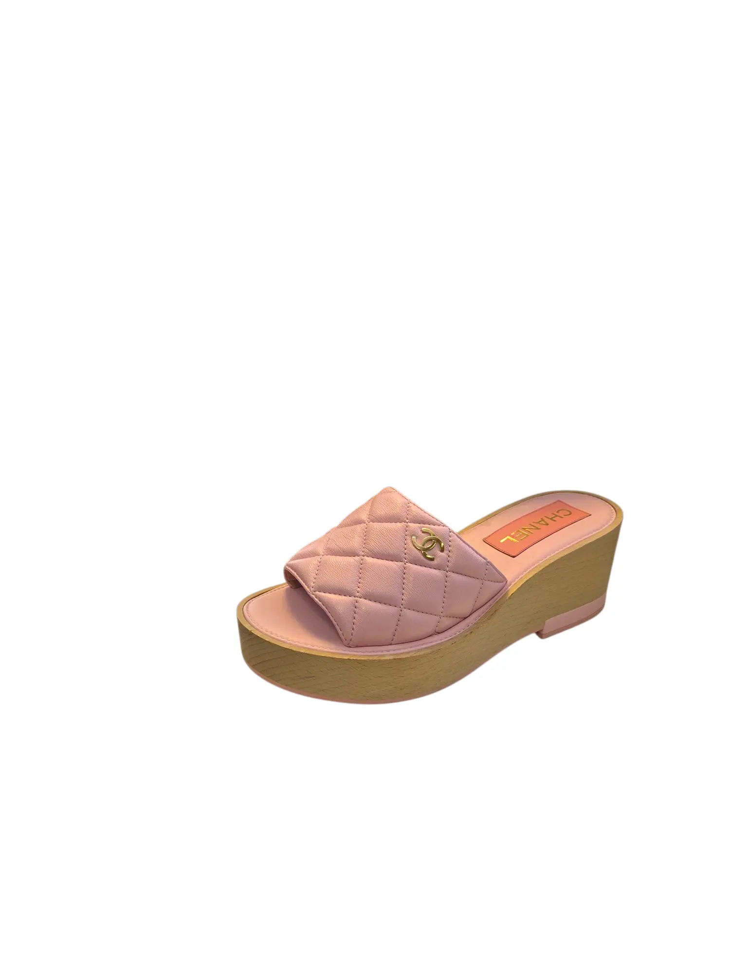 ▪︎Condition: Excellent condition ▪︎Material: Leather ▪︎Color: Pink ▪︎Size: 40 ●Chanel leder Sliders From 2022 Collection by Virginie Viard ●Interlocking CC logo & Quilted pattern ●Platform ●Platform high 7cm ●This style typically runs narrow and half to a full size small