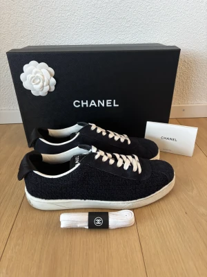 Ich verkaufe ein paar original CHANEL Sneakers in der Grösse 37.5, welche aber eher gross geschnitten sind. Ich trage normalerweise bei Schuhen mindestens die Grösse 38.5. Haben nur sehr leichte Tragespuren an den Sohlen. Die Schuhe sind in einem wunderschönen dunkelblauen Wildleder und werden inklusive der dazugehörigen, original CHANEL Schuhbox, Ersatzschuhbänder, zwei Staubbeutel etc. verkauft. Die Sneakers kommen aus einem Nichtraucherhaushalt.