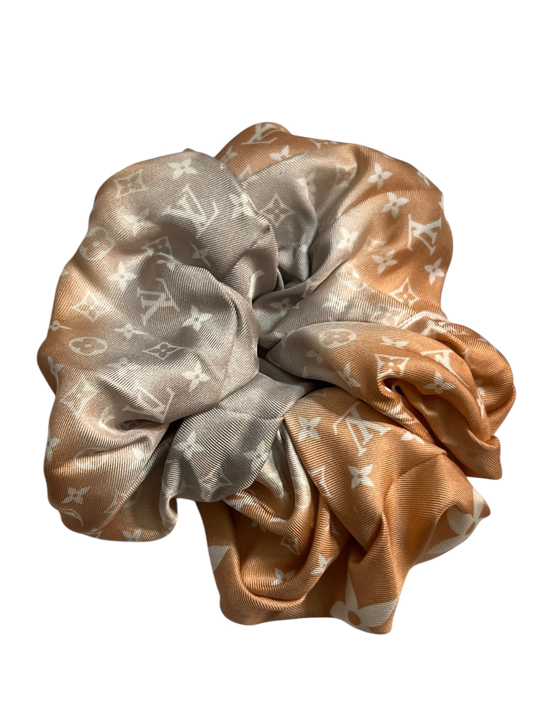 Add a subtle touch of luxury to your hairstyle with this Louis Vuitton silk scrunchie. Reversible, it offers two styles in one: one side features a delicate Monogram pattern in a soft pink tone, while the other is adorned with an elegant beige hue.