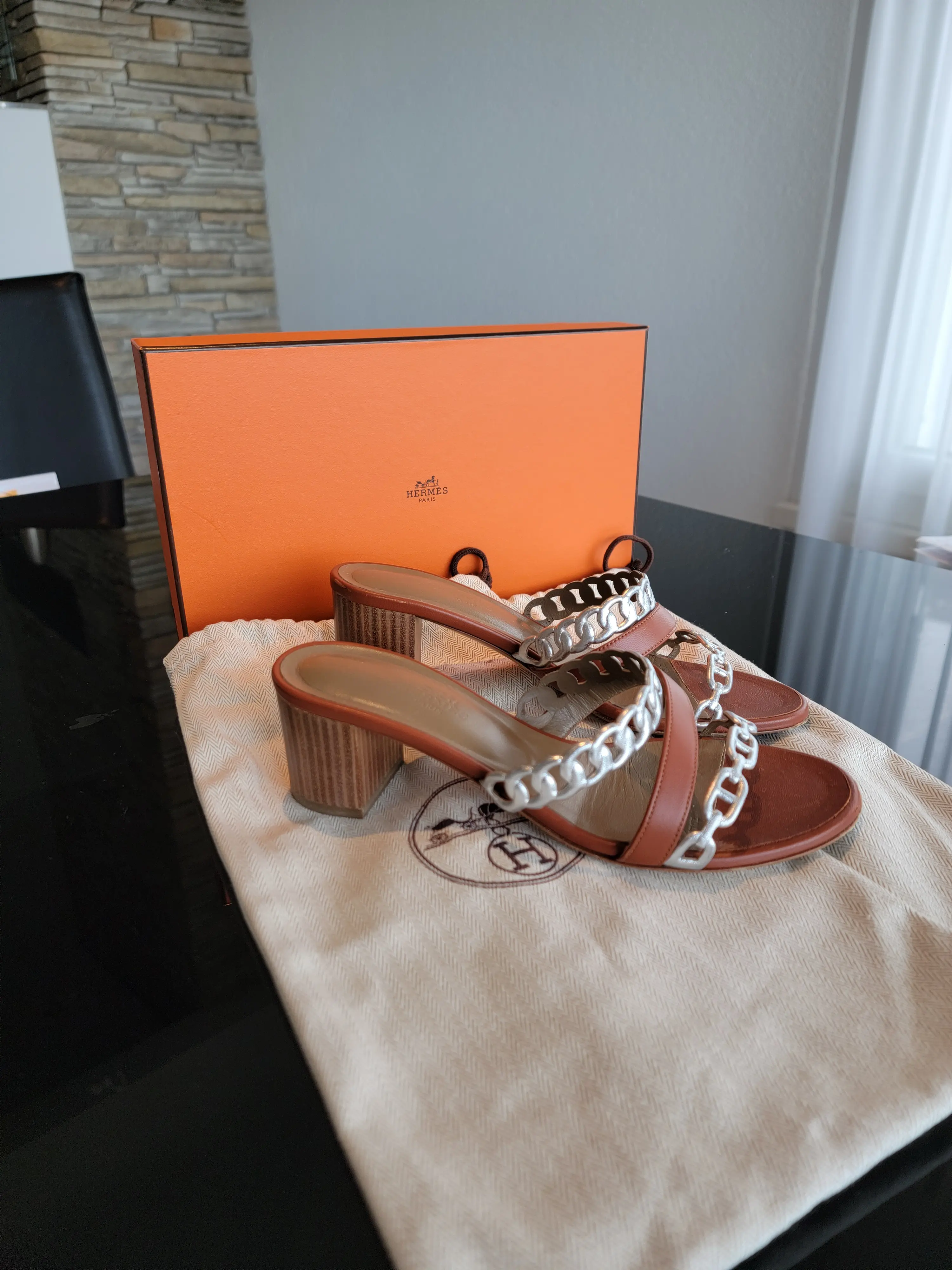 Klassische Hermes Sandalen, im Handel ausverkauft. Zwei Mal getragen und in sehr gutem Zustand. Nur die Sohlen haben Gebrauchsspuren. Neupreis ca. 900.-