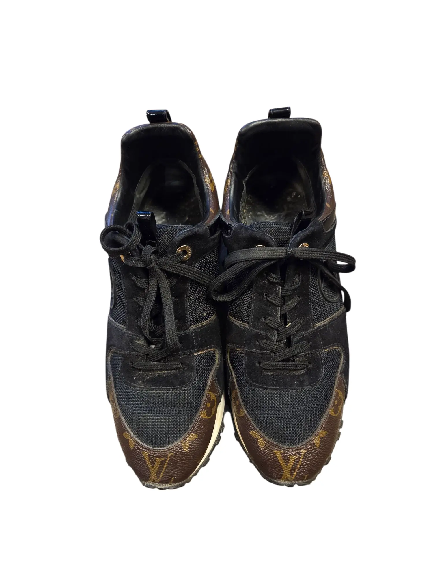 Louis Vuitton Brown/Black Monogram Leather and Mesh Run Away Sneakers Size 40 Very good condition
