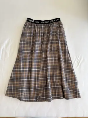 Midirock, grau, beige kariert. Weiches Gewebe. Elastischer Bund, kein Futter