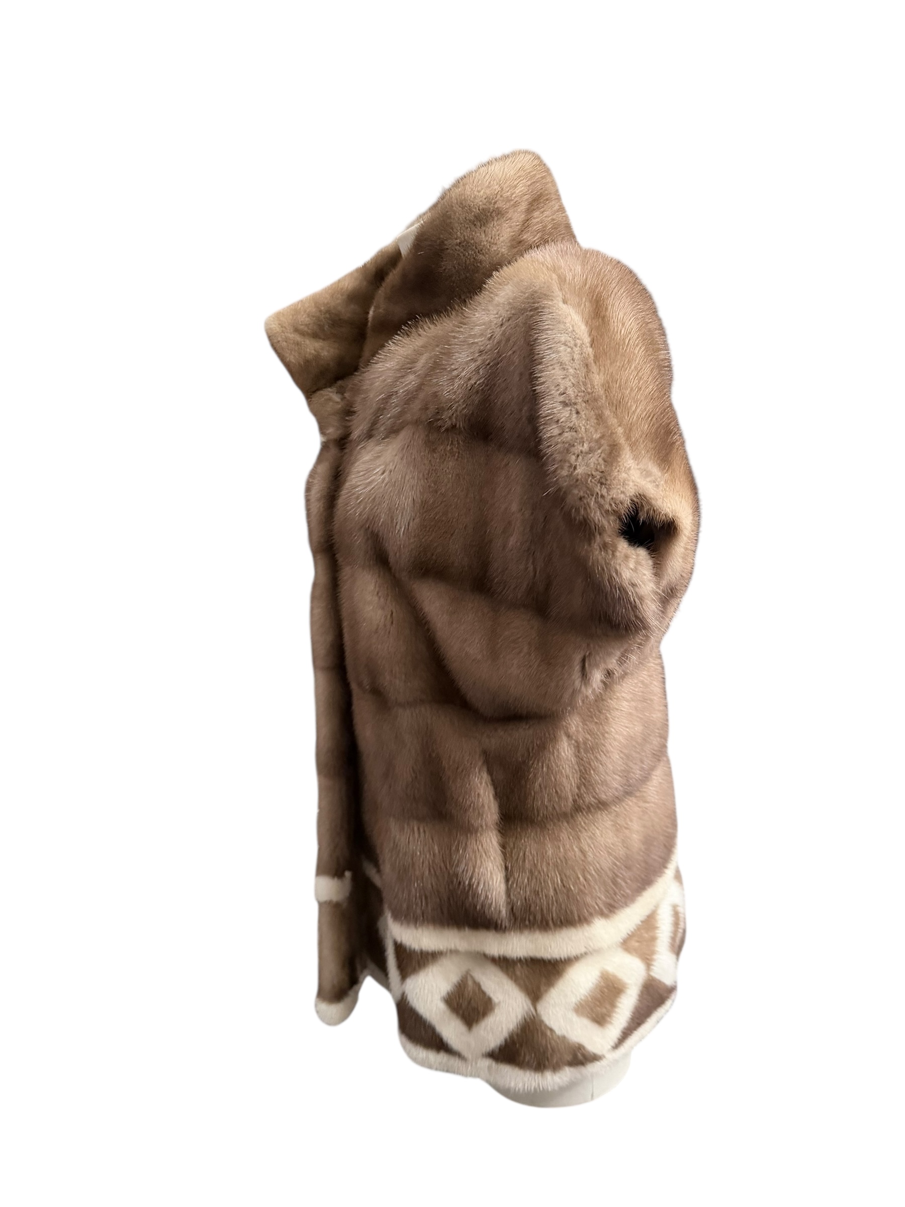 This Natacha & Vanessa jacket is a piece of high-quality fur that combines traditional luxury and contemporary design. Crafted from high-quality mink in an elegant taupe/brown shade, it stands out for its modern cut with generous volumes and short flared sleeves, offering a sophisticated cape-like look.