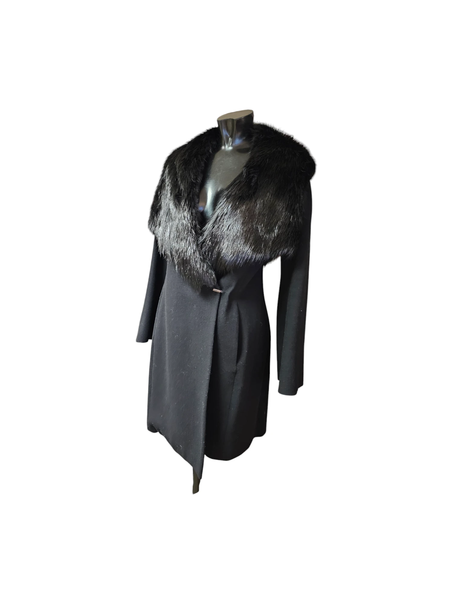 Condition: Very good condition Material: 45% Virgine Woole, 21% Ramie, 17% Viscosa, 14% Poliamide, 3% Elastane Color: Black Size: Fr40 (eu38) Details: Length: 96 cm Chest width: 46 cm Plei Sud coat with removable fur collar/ vest Fox fur Fastening with a hook No side pockets The coat is in good condition without stains