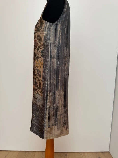 Es ist ein schön fliessendes Seidenkleid, angenehm zu tragen, zeitlos.