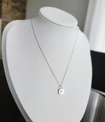 Sehr schöne Silber-Halskette von Tiffany mit kleinem Schloss (8 mm Durchmesser). Feine Kratzer von Gebrauch und Aufbewahrung. Das Schmuckstück wurde professionell gereinigt und glänzt fast wie neu.