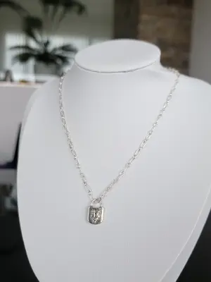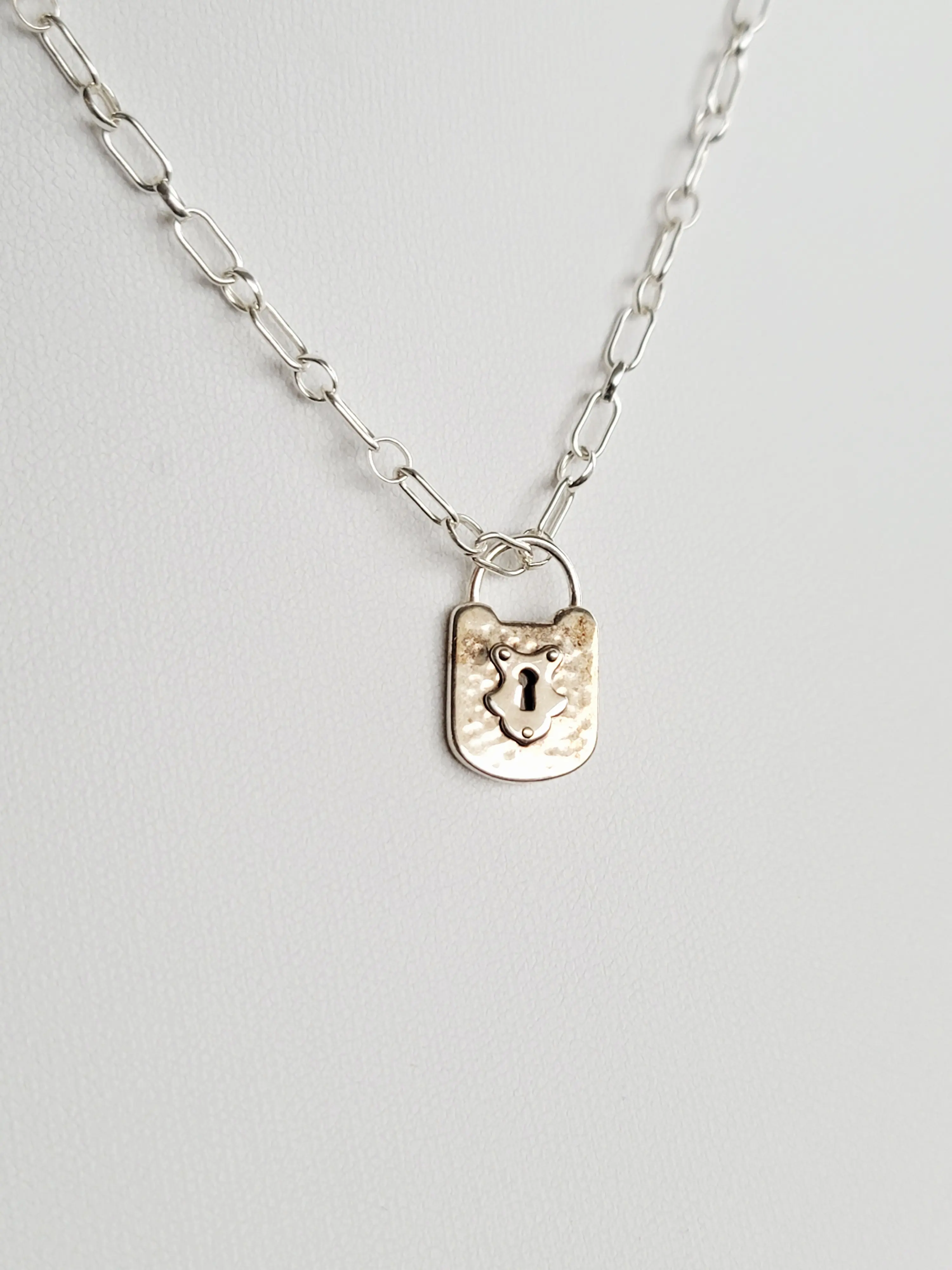 Schöne Silber-Halskette von Tiffany mit mittelgrossem Schloss. Feine Kratzer von Gebrauch und Aufbewahrung. Das Schmuckstück wird vor dem Versand nochmals professionell gereinigt um die verbliebenen Oxidationsflecken zu beseitigen. Sie erhalten es garantiert ohne Flecken.