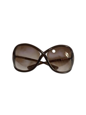 Tom Ford sunglasses, Whitney model, recognizable by their brown infinity-shaped frame elegantly crossing at the center. Their large gradient brown tinted lenses offer both style and protection.