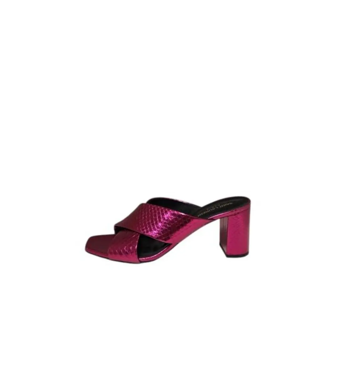 Condition: Excellent condition Material: Leaher Color: Pink Size: 40 Metalic leather mules in pink by Saint Laurent Heels hight 9cm they have small sign of wear on the soles but still in excellent condition