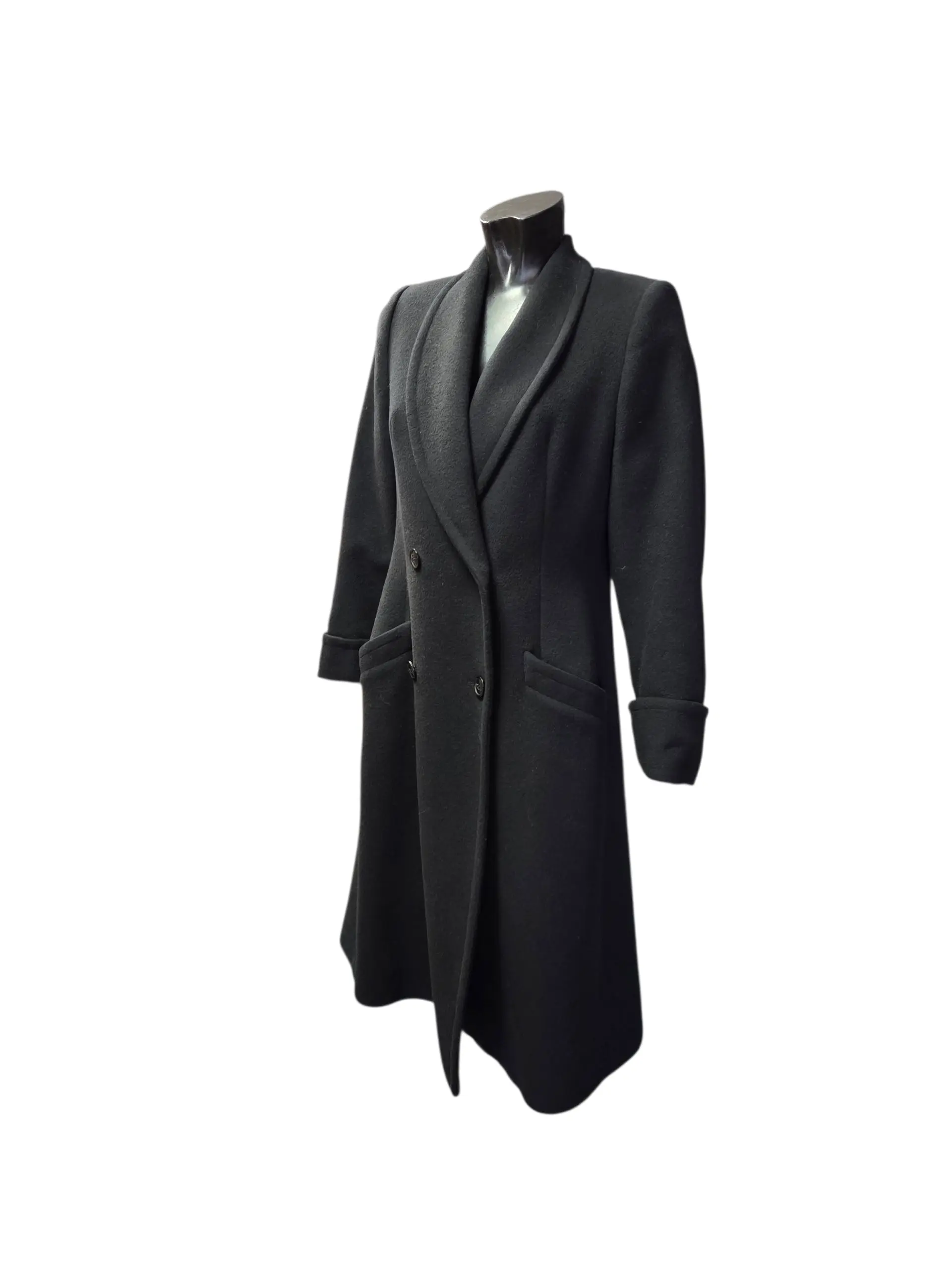 Stay warm and stylish this winter with this timeless, pre-owned Gucci winter coat! This elegant, black, unicolour coat, in size 38, is perfect for any woman's wardrobe. Made from high-quality fabric, this coat offers both comfort and durability. Button front closure Side pockets Vintage 90% Wool 10% Cashmere Length 107cm Chest width 47cm Arm Length 58cm Excellent condition