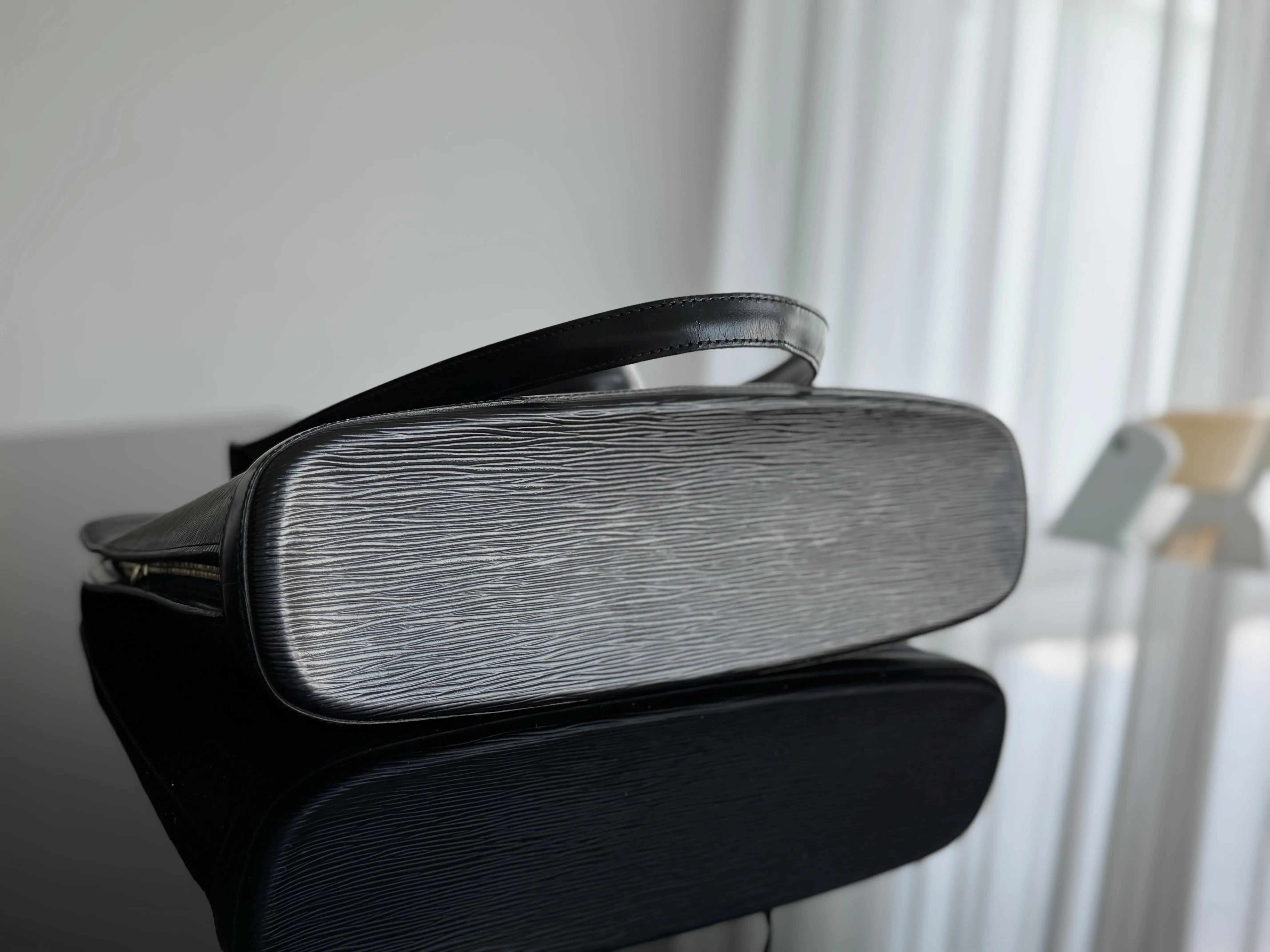 Das Eli Leder dieser Louis Vuitton Lussac Tasche ist in ausgezeichnetem Zustand. Innen ist sie sehr gepflegt, mit einem kleinen Fleck. Der Reissverschluss gleitet sehr gut. Die Griffe haben Alterungsspuren gemäss Bildern. Die Versiegelung der Oberkante ist altersbedingt auch etwas "brüchig" geworden. Eine perfekte Tasche für's Büro, da auch ein 13 Zoll Laptop reinpasst