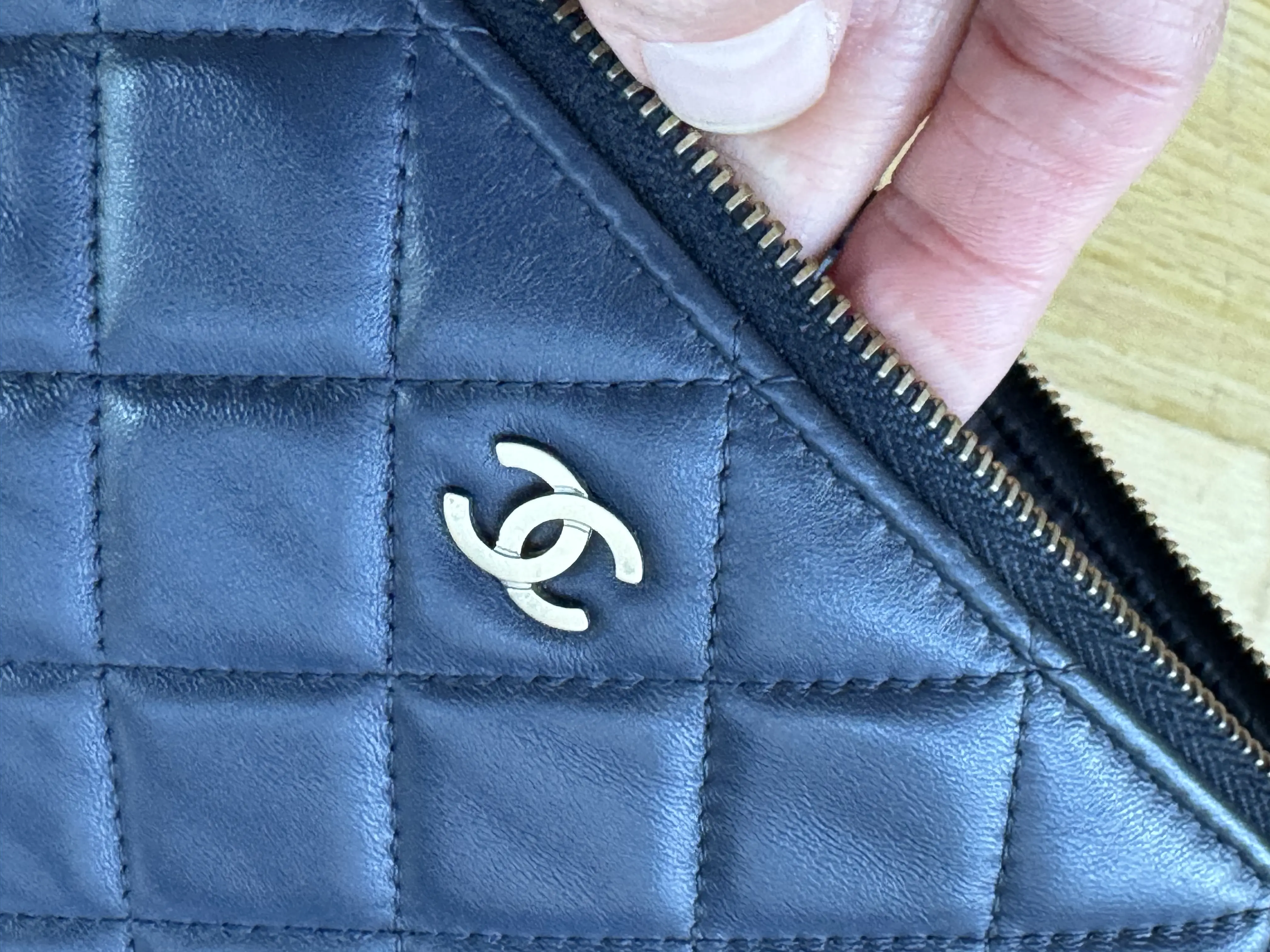 Neuwertige Chanel Pochette in Navy blau